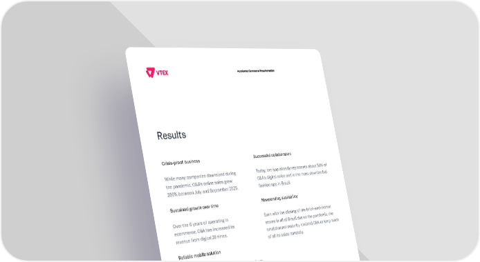 Successful collaboration Today, the app already represents about 50% of C&A’s digital sales and is the most downloaded fashion app in Brazil. Neverending availability Even with the closing of the brick-and-mortar stores in all of Brazil due to the pandemic, the omnichannel maturity enabled C&A to keep track of all its sales remotely. Crisis-proof business While many companies downsized during the pandemic, C&A’s online sales grew 350% between July and September 2020. Sustained growth over time Over the 6 years of operating in ecommerce, C&A has increased its revenue from digital 20 times. Reliable mobile solution The company grew from 100 to 300 sellers from September 2020 to December 2020. Results