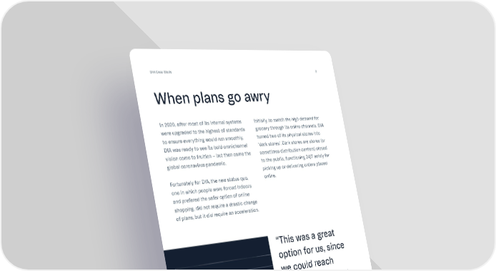 DIA Case Study 8 When plans go awry In 2020, after most of its internal systems were upgraded to the highest of standards to ensure everything would run smoothly, DIA was ready to see its bold omnichannel vision come to fruition – but then came the global coronavirus pandemic. Fortunately for DIA, the new status quo, one in which people were forced indoors and prefered the safer option of online shopping, did not require a drastic change of plans, but it did require an acceleration. Initially, to match the high demand for grocery through its online channels, DIA turned two of its physical stores into ‘dark stores’. Dark stores are stores (or sometimes distribution centers) closed to the public, functioning 24/7 solely for picking up or delivering orders placed online. “This was a great option for us, since we could reach more than 160 new neighborhoods and we could make the DIA Online service known to many more families.” Fernanda Onzari Nobua, Ecommerce Director of DIA Argentina